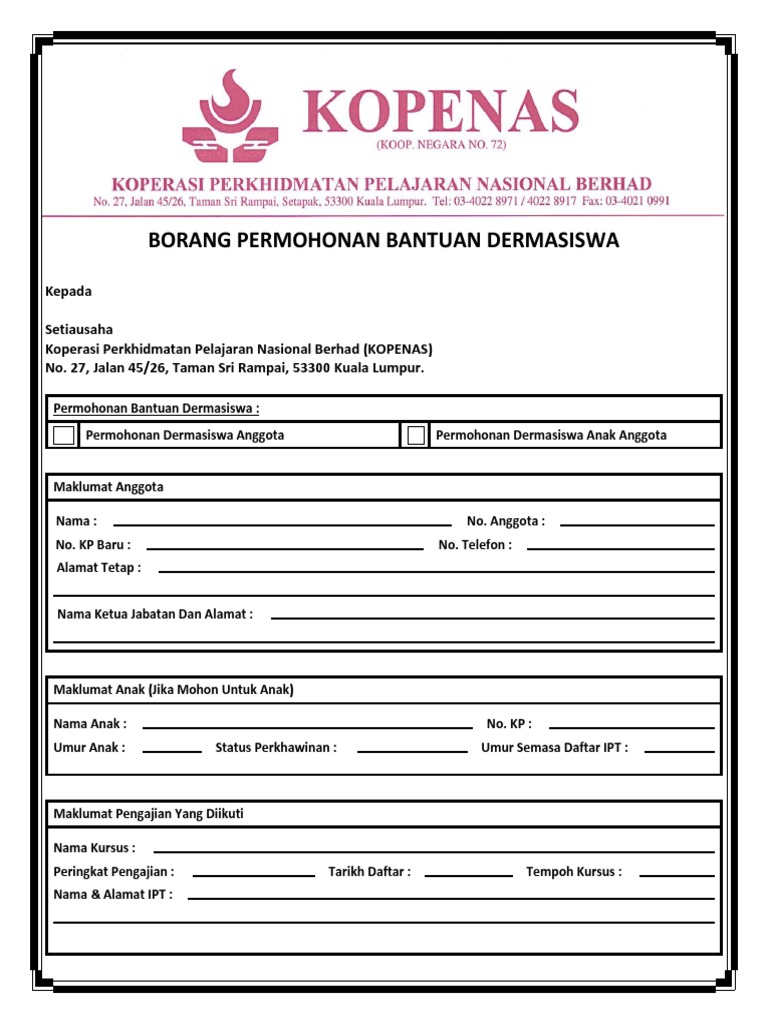 Borang Bantuan Dermasiswa Kopenas Pdf